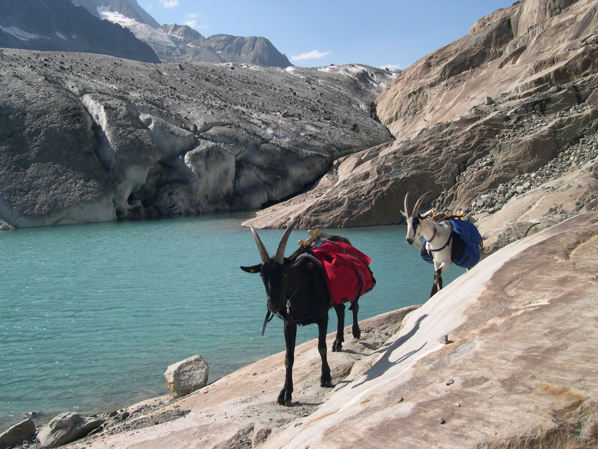 Nino und Lupo am Märjälensee, mit dem Aletschgletscher im Hintergrund.