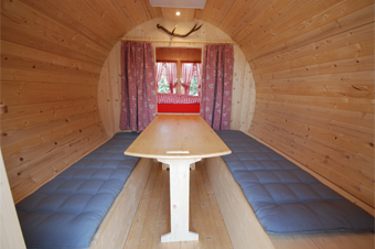 Unser Wohn-Schlaffass ist nachhaltig aus einheimischen Fichtenholz hergestellt. Es hat eine Grösse von 4.5 M Länge und 2.5 M Breite es ist in zwei Räume unterleilt und bietet Platz für 4 Personen. Im vorderen Teil befindet sich der Wohnbereich mit einem ausziehbaren Tisch, der gross genug ist, dass 4 Personen daran komfortabel sitzen und essen können. Die zwei seiltlichen Bänke, lassen sich einfach in Schlafstellen umwandeln. Im hinteren Raum befindet sich ein Doppelbett 1,60 Meter x 2,00 Meter. Das Wonfässli hat Stromanschluss, elektrische Beläuchtung und eine Infrarot Heizung für wohlige Wärme. Ein eigenes Bad und WC kann im nahegelegenen Wohnhaus benützt werden.